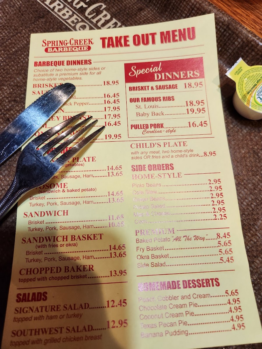 Welcome to Spring Creek Barbeque - McKinney, where the essence of Texas-style barbecue shines through every dish. Located conveniently at 1993 N Central Expy, this establishment offers a delightful menu that caters to barbecue enthusiasts and casual diners alike.